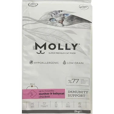 yavru kedilerinin gelişimi için özel olarak formüle edilmiş, Molly Mother Babycat Tavuklu Yavru Kedi Maması, kedilerin ihtiyaç duyduğu tüm besin maddelerini içerir. Bu ürün, özellikle yeni doğan ve sütten kesilen kedicikler için ideal bir besin kaynağıdır.
